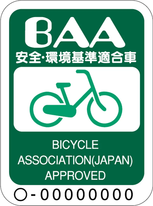 BAAマークは、一般社団法人自転車協会が定める自転車安全基準に適合した自転車に貼られています。自転車安全基準には全部で約90項目の検査項目があり、ブレーキ制動性能、フレーム・駆動部の強度、ライトの光度、リフレクターの反射性能などの検査に合格する必要があります。