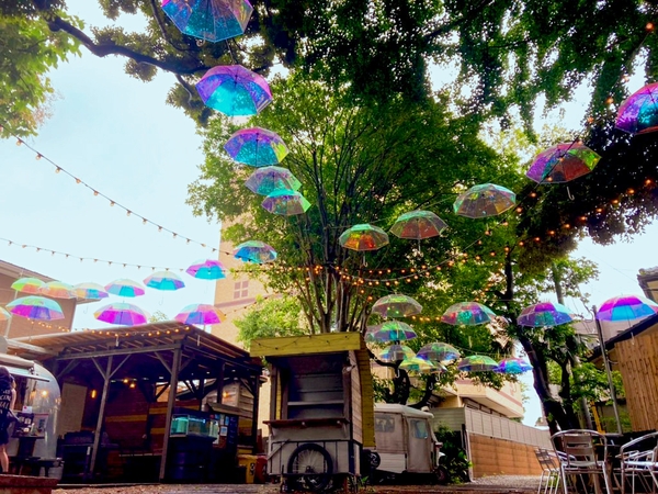 昨年5周年を迎えた椿森コムナは2021年1月に施設を大幅改築し、リニューアルオープン。リニューアル後の企画第2弾として、4月より開催していた「Wrapping komuna~blooming~」に続き、今回もコラボレーションイベントを開催します。また椿森コムナのアートディレクターであるJesus氏により、上空をオーロラ傘で幻想的な世界にラッピング。色とりどりの景色に変化していきます。