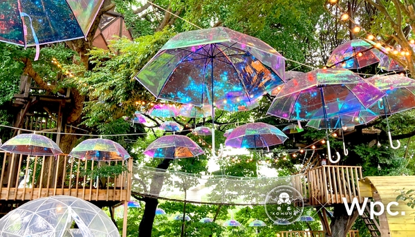 椿森コムナ×Wpc. コラボ企画第2弾!オーロラ傘を使った「Wrapping komuna~万華鏡の空2021~」