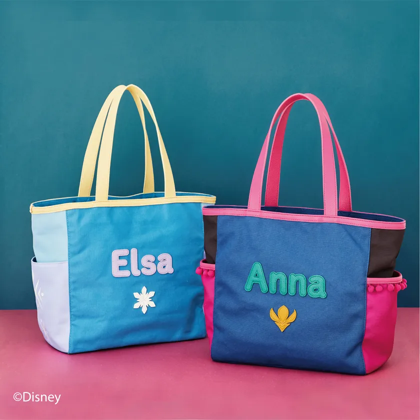 『アナと雪の女王』に登場する「アナ」、「エルサ」をイメージしたトートバッグ。「アナ」バージョンのトートバッグには、「アナ」が着ているドレスをイメージした配色と両サイドにタッセルを施した「アナ」を連想させるデザインに。「エルサ」バージョンのトートバッグには、「エルサ」の着ているドレスをイメージした配色に雪の結晶モチーフをデザイン。「エルサ」の魔法で作られる氷を色やモチーフで表現したバッグに。「アナ」の楽観的で明るい雰囲気と「エルサ」の落ち着いた上品な世界観を楽しめるシリーズ。