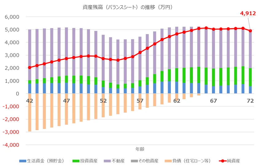 家計版バランスシート(資産、負債、純資産)の推移を計算