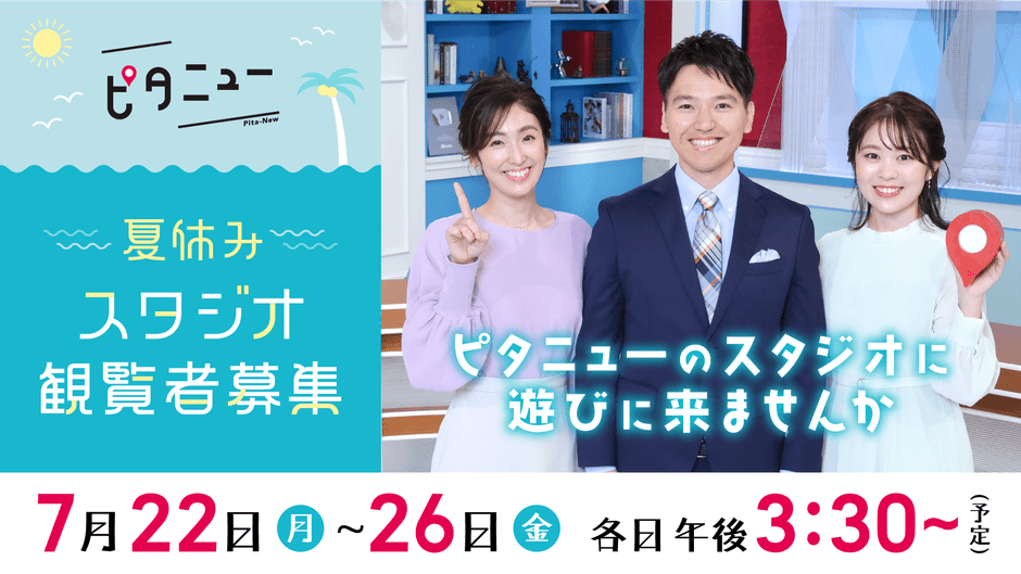 広島ホームテレビでは今年も、小学生のみなさんを対象に、『ピタニュー』(月~金 夕方4時40分から放送)のスタジオ観覧イベントを開催いたします。
