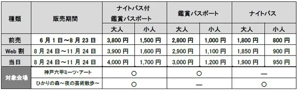 ※ROKKO森の音ミュージアム、六甲高山植物園、トレイルエリア(一部会場)、風の教会エリアは有料会場