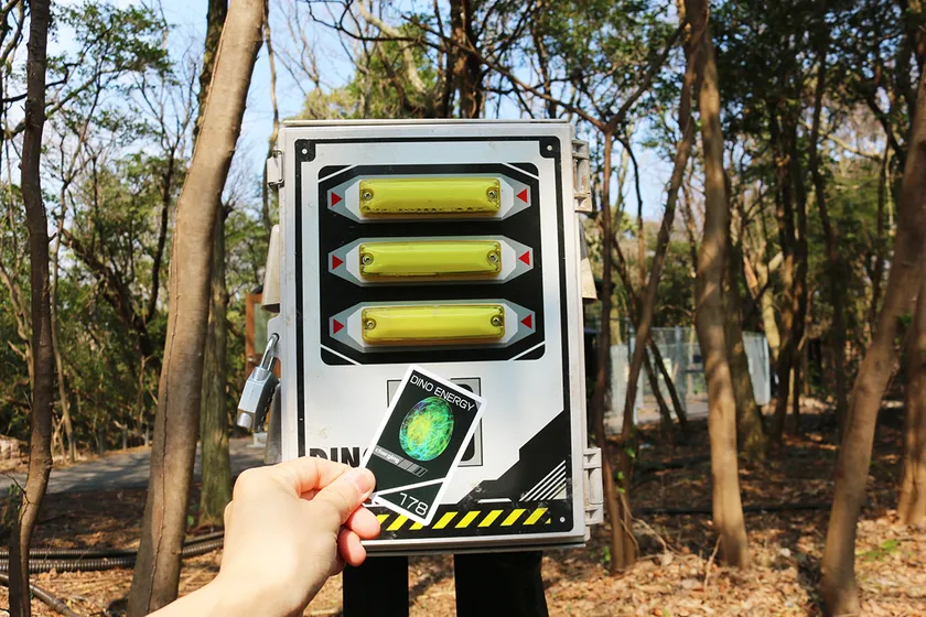 「恐竜の森」は2024年3月にオープンした国内最大級の恐竜アトラクション。30種60体以上の恐竜たちが生きる約26,000m2の広大な森を来場者自身が歩いて進むウォークスルー型アトラクションです。ディノレンジャーとして、全長約1,000mのコースのあちこちに設置されたエネルギーボックスを巡り、未知のエネルギー「ディノエネルギー」を集める収集ミッションに挑みます。