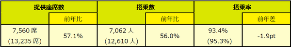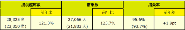 ◆提供座席数・搭乗数・搭乗率
