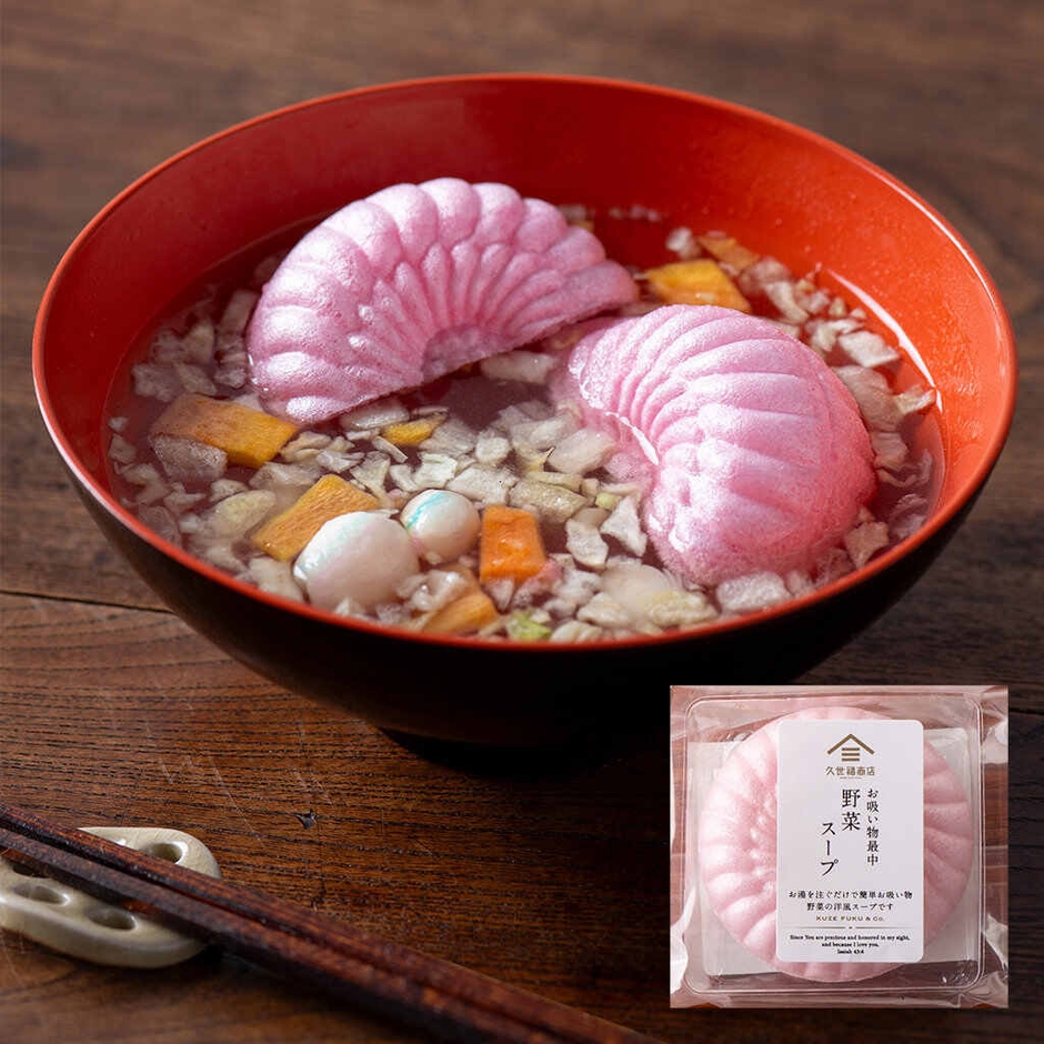 久世福商店の人気商品「お吸い物最中」に、年末年始限定セットが登場いたしました。既存品との違いとしては、赤色のパッケージと紅白のお吸い物最中がセットになっている点です。