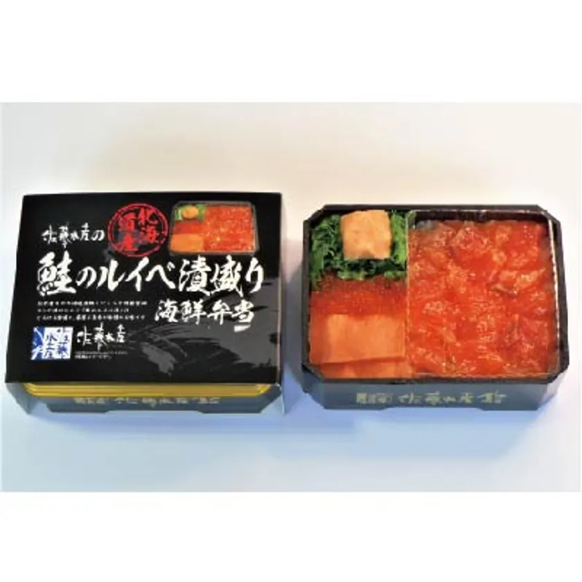 佐藤水産謹製「鮭のルイベ漬」をしきつめた天然鮭をご堪能いただけるお弁当です。