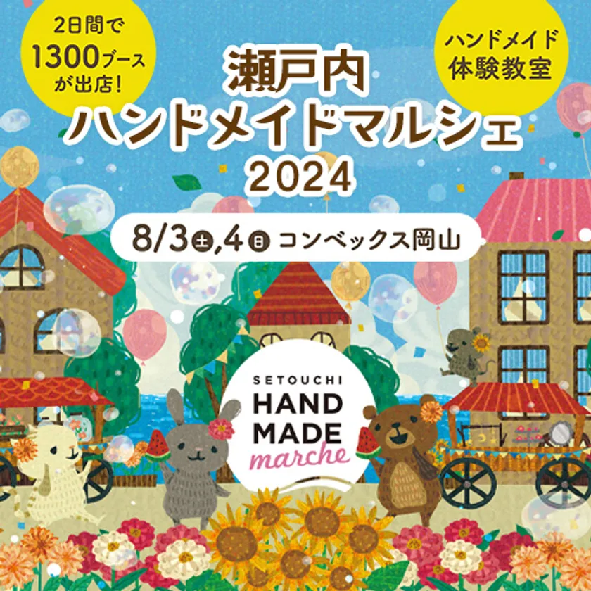 瀬戸内ハンドメイドマルシェ実行委員会(東京都港区/代表:堤田 和久)は、全国のハンドメイド作家が自ら制作した手づくり作品を自由に展示・販売するイベント「瀬戸内ハンドメイドマルシェ2024」を2024年8月3日(土)・4日(日)の2日間、コンベックス岡山(岡山県岡山市)にて開催します。