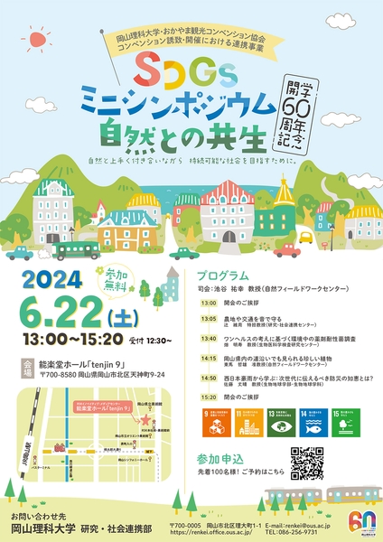 【岡山理科大学】開学60周年記念 SDGsミニシンポジウム〜自然との共生〜|日時:2024年6月22日(土)13:00~15:20 開催!参加無料