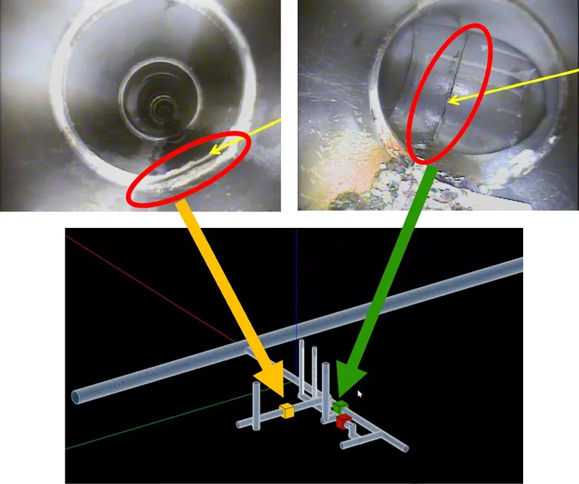 図面化する際は、配管内の映像を見ながら継手や分岐の位置を手作業で判断していた