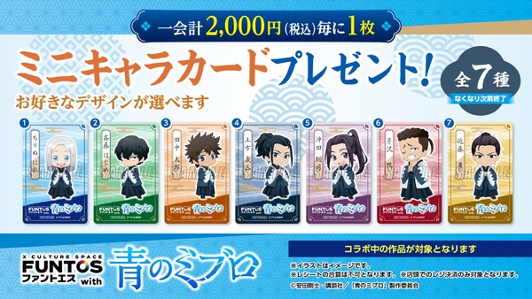 TVアニメ『青のミブロ』7人の描き起こしミニキャラグッズが登場!「ファントエス with 青のミブロ」は11/27(水)スタート!