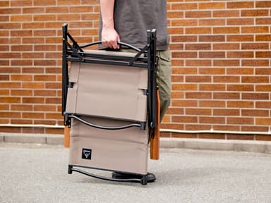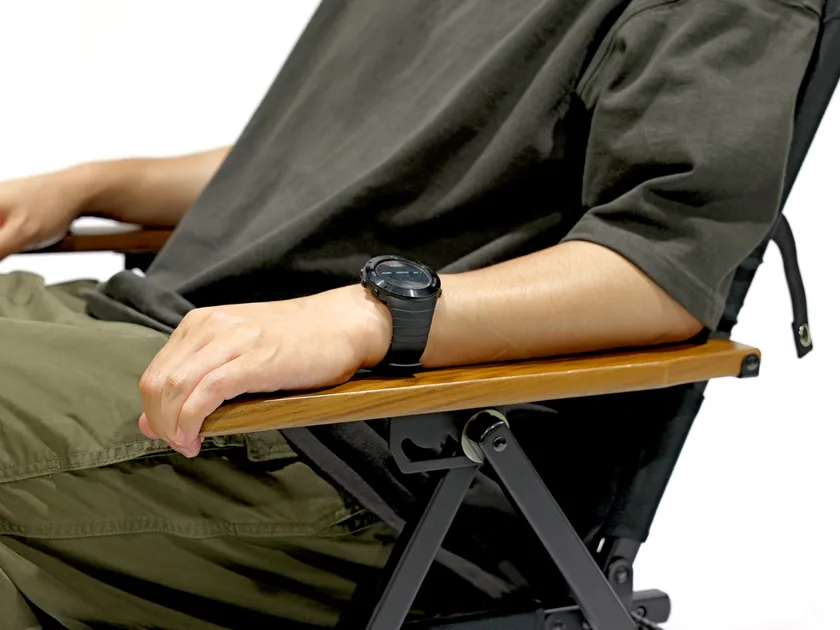 座部および背部には難燃加工を施した「コットンキャンバス風合い生地」を採用しています。風合いを残しつつも重量感の軽減を実現。また、火の粉が飛んできても生地が燃え広がる心配はありません。星空を眺めながら、焚火も楽しむ欲張りなリラックスタイムを実現できます。