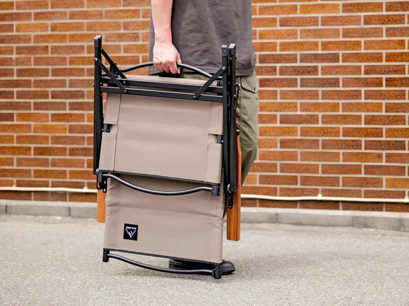 今までに無かったリクライニング機能を持ちながら、完全分解収納を実現。もちろん二つ折りも可能。車の積載量に余裕がある時は二つ折り、積載量に制限がある時は完全分解することで状況に合わせた最適な運搬・収納を実現します。