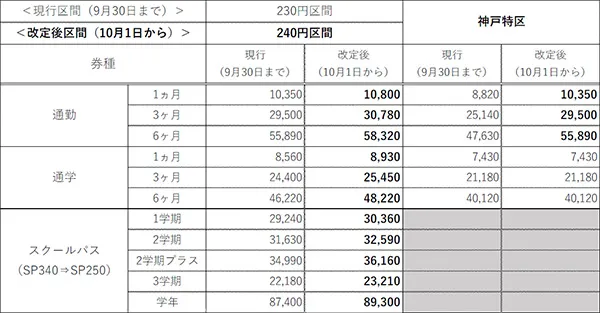 全線の運賃を上限額の240円へ変更(神戸特区を除く。)。