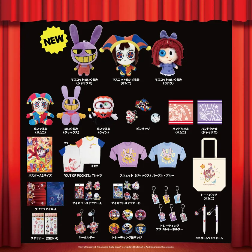 これまでイベントや一部オンラインストアでしか手に入らなかった「アメイジング・デジタル・サーカス」の公式ライセンス商品が、全国の店舗及び一部オンラインショップにて2024年7月19日より販売を開始します。