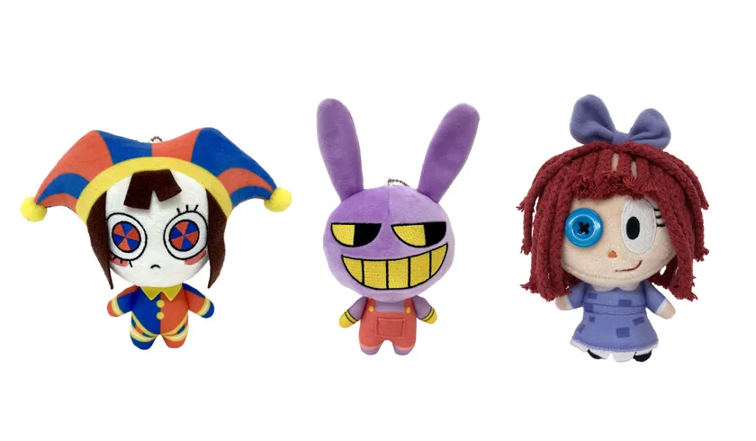 <アメイジングデジタルサーカス マスコットぬいぐるみ(ポムニ/ジャックス/ラガタ) 画像>