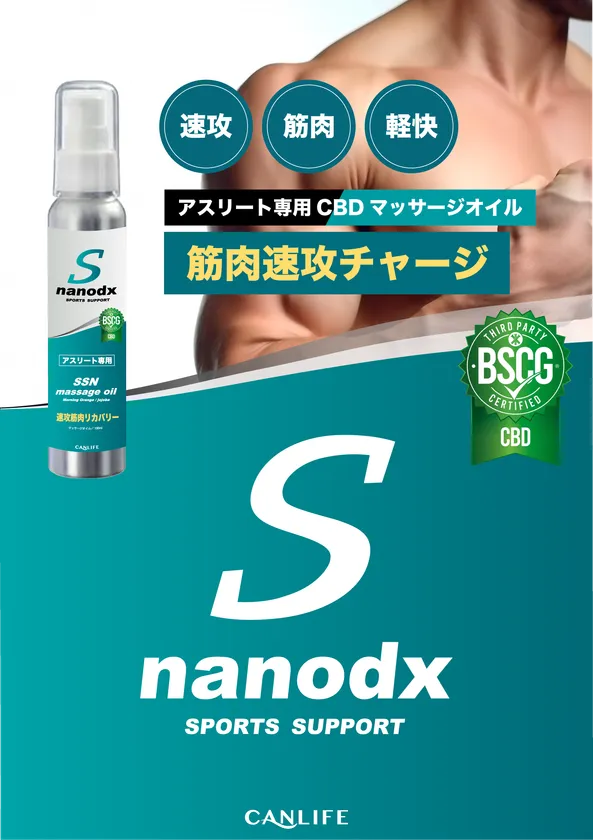 国内で初めて※天然カンナビノイドでアンチドーピング認証「BSCG Certified CBD」を取得した株式会社CANLIFE(本社:東京都中央区日本橋、代表取締役社長:原口 孝志)は、アスリートブランド「Sports Support nanodx」より第一弾SSNマッサージオイルを本日2024年6月26日(水)から発売します。
