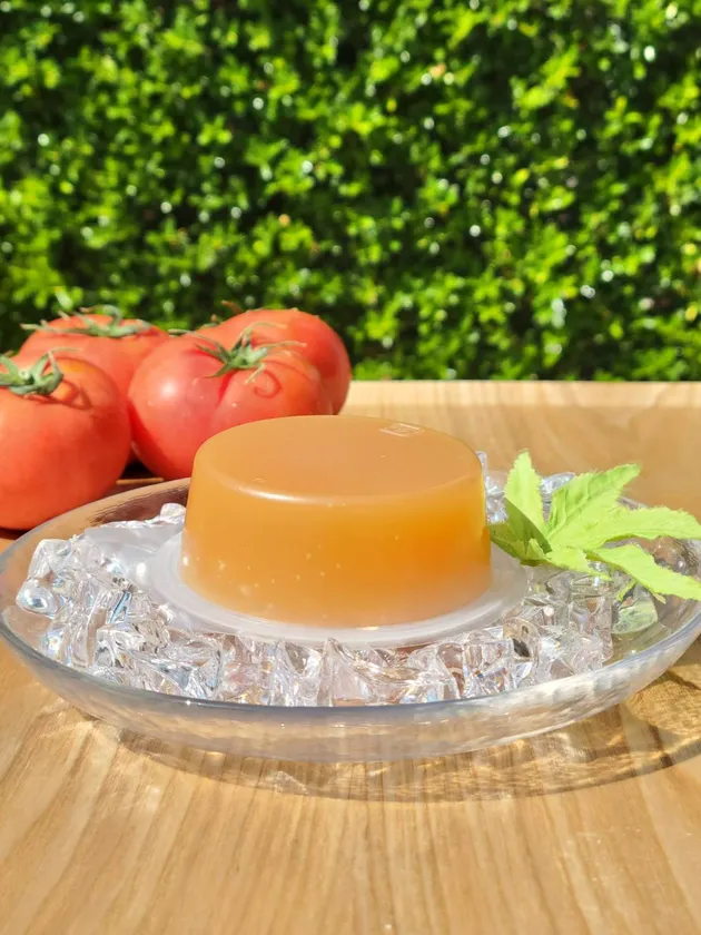 トマトゼリーというと、青臭いイメージを想像しがちですが、濃厚な旨味の海洋深層水トマトに創業155年の老舗和菓子職人が出会うことで、フルーツのように甘く香り良い絶品のトマトゼリーに仕上がりました。