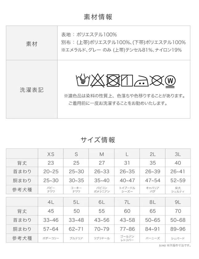 ■サイズはXSから9Lまで!大型犬サイズも豊富