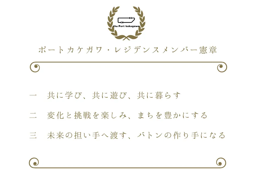 またポートカケガワは大切にしたい価値観や姿勢をまとめた「レジデンスメンバー憲章」を掲げ、それに則ったレジデンスメンバーを募集中です。