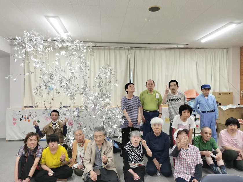 この七夕飾りは、西海市にある社会福祉法人 西海市手をつなぐ育成会 就労継続支援(B型)事業所「互隣の家(ごりんのいえ)」の入所者さんに制作いただきました。