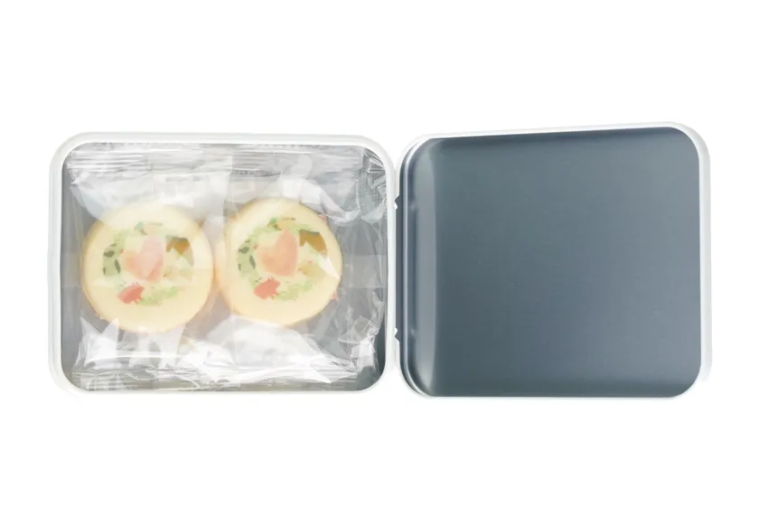 オリジナルミニクッキー缶はどのデザインにも合いやすい、マットで落ち着いたホワイトを採用しています。