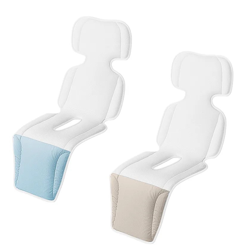 4層構造のシートで心地よい肌触り。シートのメッシュ生地から風を出して、背中ムレを防ぎ、熱のこもりやすいチャイルドシートやベビーカーが快適空間に早変わり!