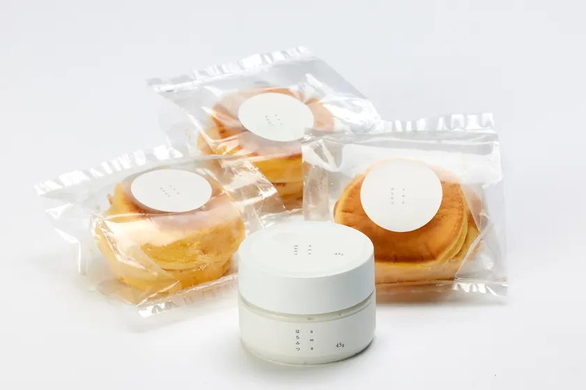 awaはちみつの基本の一品「awaはちみつ001 45g」と冷たいままでもふわふわで美味しい「ふわふわパンケーキ」3個をセットにしてお届けします。
