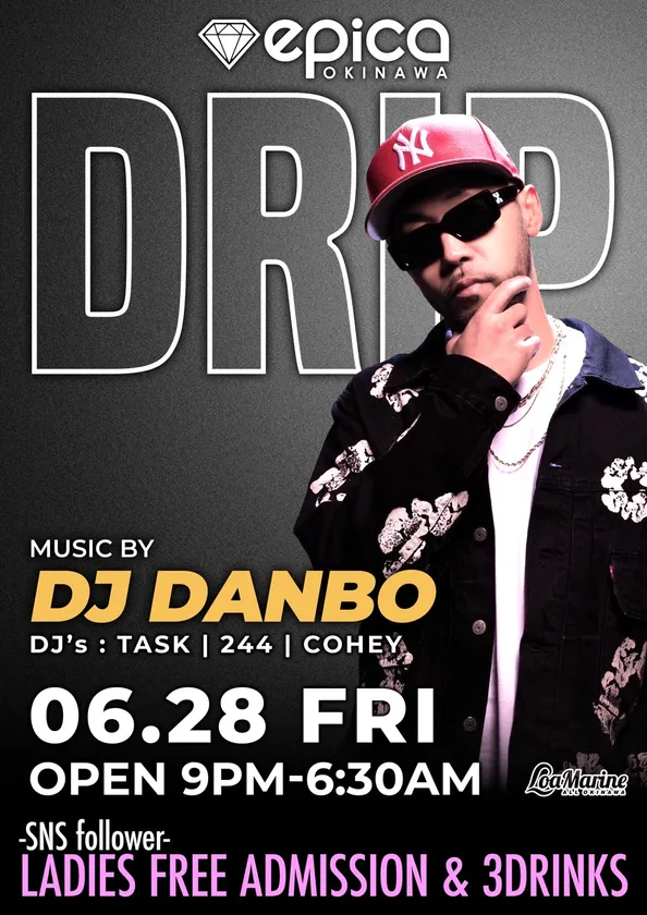 株式会社SEQUENCEは、沖縄の国内最大級CLUB「epica OKINAWA」にて、DJ DANBOが仕掛けるHIP HOPパーティー「DRIP」を2024年6月28日(金)に開催します。