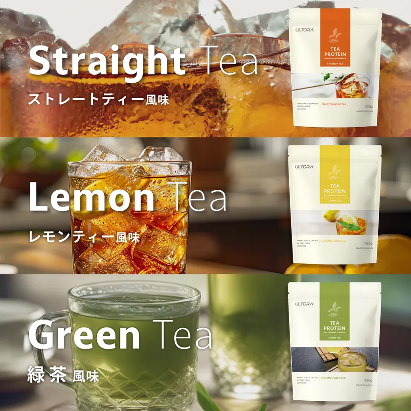 株式会社ULTORA(所在地:東京都渋谷区、代表取締役:高田 卓慎)は、公式サイトにてULTORA初のTEA PROTEIN「ストレートティー風味」「レモンティー風味」「緑茶風味」の3種を販売開始いたしました。