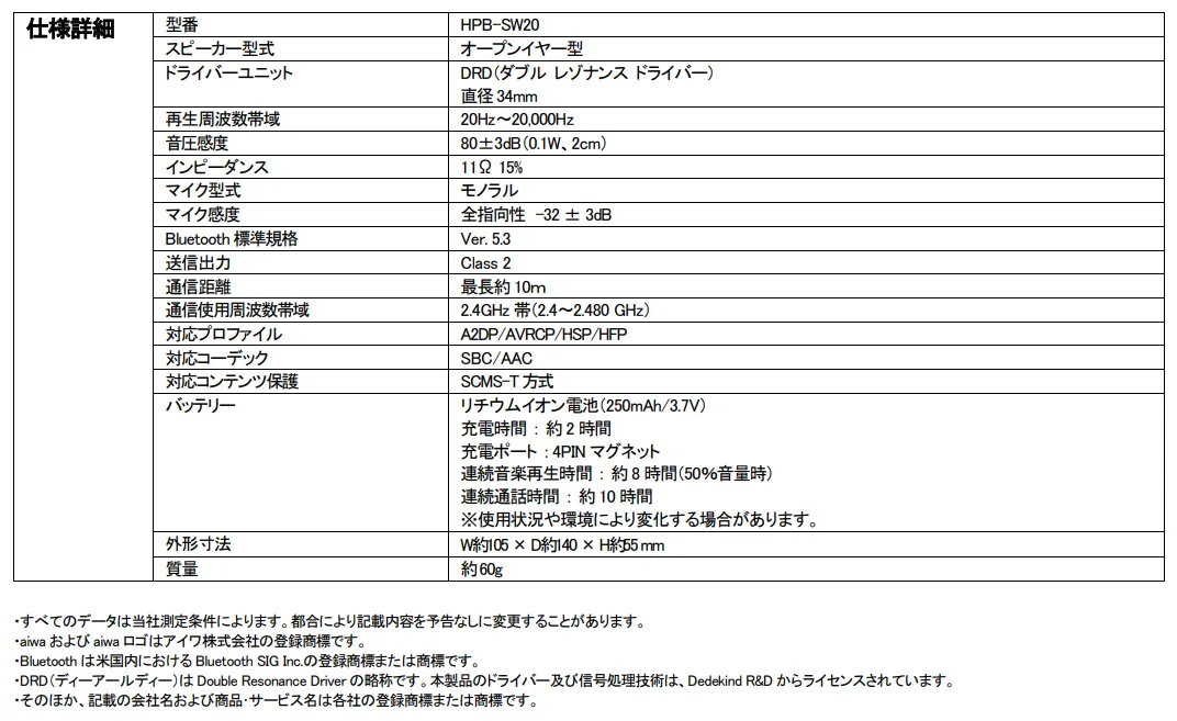 本製品が採用した独自構造のスピーカーは、内部2つの振動ファクターで小型ながら超低音から高域までの再生を実現し、圧倒的な臨場感を味わえます。また、耳掛け式を採用し、長時間装着しても疲れにくい小型・軽量60gを実現いたしました。耳を塞がない開放型かつ柔軟性のある素材で気軽に装着可能な上、小型スピーカーの常識を覆す驚きと感動の音質をお楽しみいただけます。