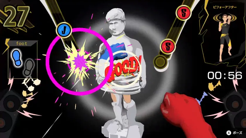 1日の締めくくりとして、思いきりパンチすることで今日のストレスを発散するとともに、有酸素運動で気持ち良く発汗させるゲーム(ゲーム名「ビフォーアフター」)が発動します。