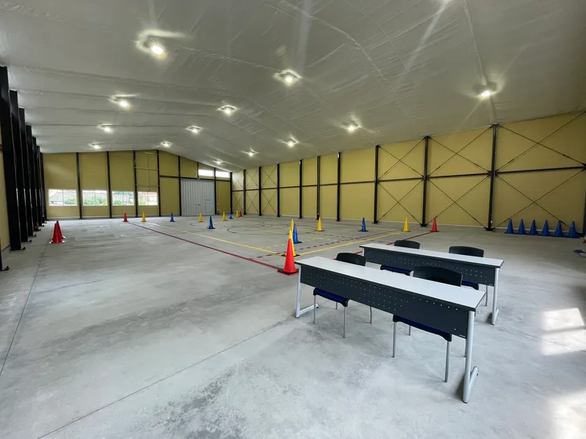 「拝島ドローンフィールド」は、自前で所有する屋内練習場では都内最大級の大きさを誇るドローン専用練習場になります(自社調べ)。屋内練習場が完成することにより、ドローン練習場までの移動時間が、ほぼ“ゼロ”になり、最短2日で「2等国家資格講習」の修了が可能になります。
