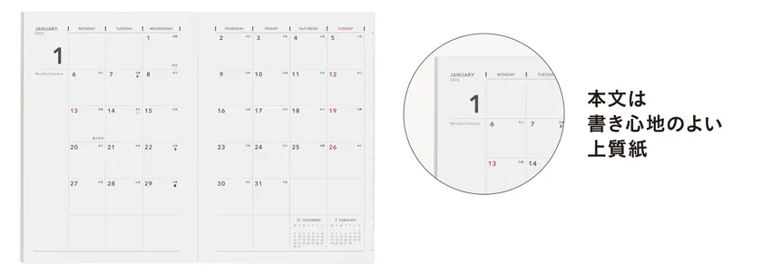 ■ノートタイプ 薄型・軽量で持ち歩きに便利なマンスリーダイアリー