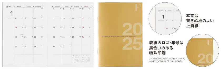 必要最小限の機能を1冊に凝縮。カラー展開はブラック、ホワイト、ゴールド、ディープレッドの全4色。
