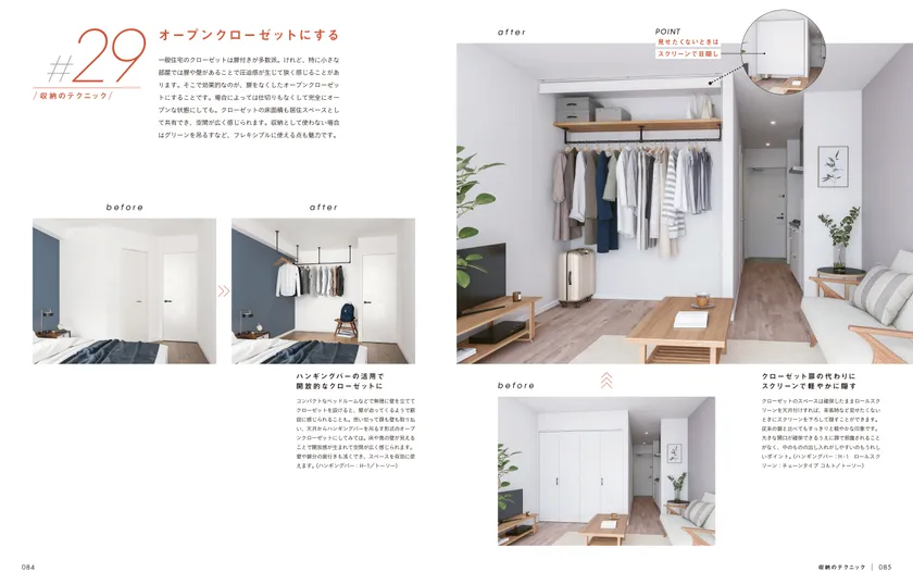 「部屋を広くすっきり見せるインテリアのテクニック35」_P84-85
