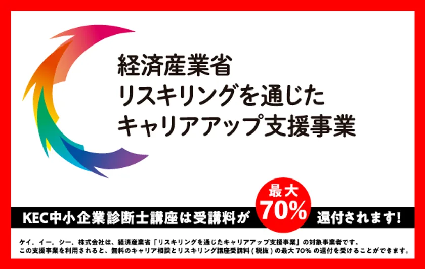 ケイ.イー.シー.株式会社は、経済産業省「リスキリングを通じたキャリアアップ支援事業」の対象事業者です。