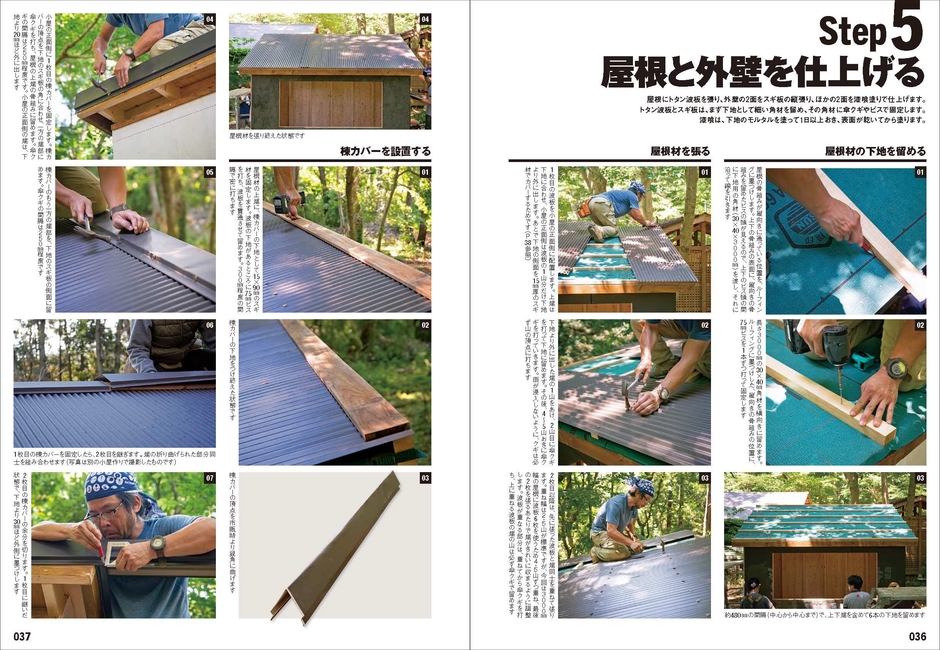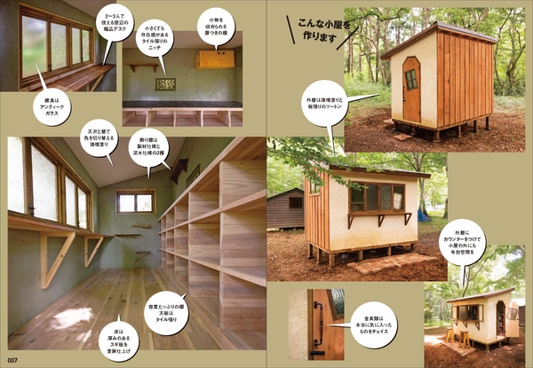 もちろん、床・壁・屋根の下地の作り方/屋根・外壁の仕上げ方/建具の作り方といった小屋作りのキモは、たくさんの写真とともに丁寧に解説。さらに、作りつけ家具を含む内装の仕上げ方まで余すところなく紹介します。