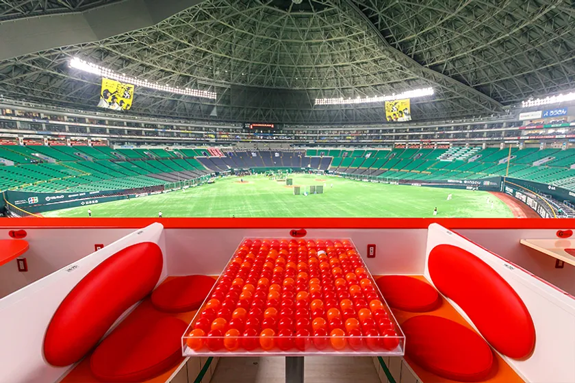 やまやは福岡ソフトバンクホークスをはじめ、地元アスリートを応援する活動を行っております。2019年、福岡から世界一を目指す福岡ソフトバンクホークスと、明太子を世界に広めたい!というやまやの想いが重なり、福岡ソフトバンクホークスの本拠地、みずほPayPayドーム福岡に「やまや めんたいこBOX」が誕生しました。明太子をモチーフとしたテーブルのボックス席では、明太子づくしのオードブルや、巨大明太子型オブジェの前での記念撮影など、ひと味違った野球観戦が楽しめます。