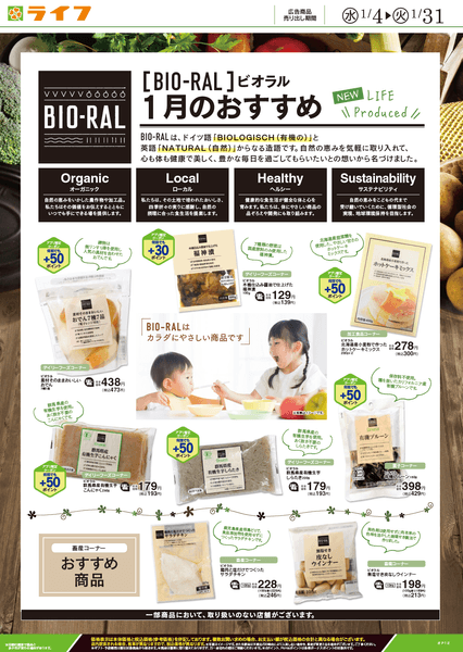 ※「BIO-RAL1月のおすすめ」チラシ掲載商品は近畿圏一部店舗でも通常売価で販売しております。