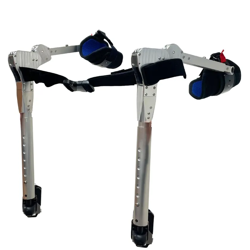 アシストスーツの機構が電車線等に引っ掛かることに起因する転倒等の災害発生リスクを抑制するため、外骨格部分の突起をできる限り排除。