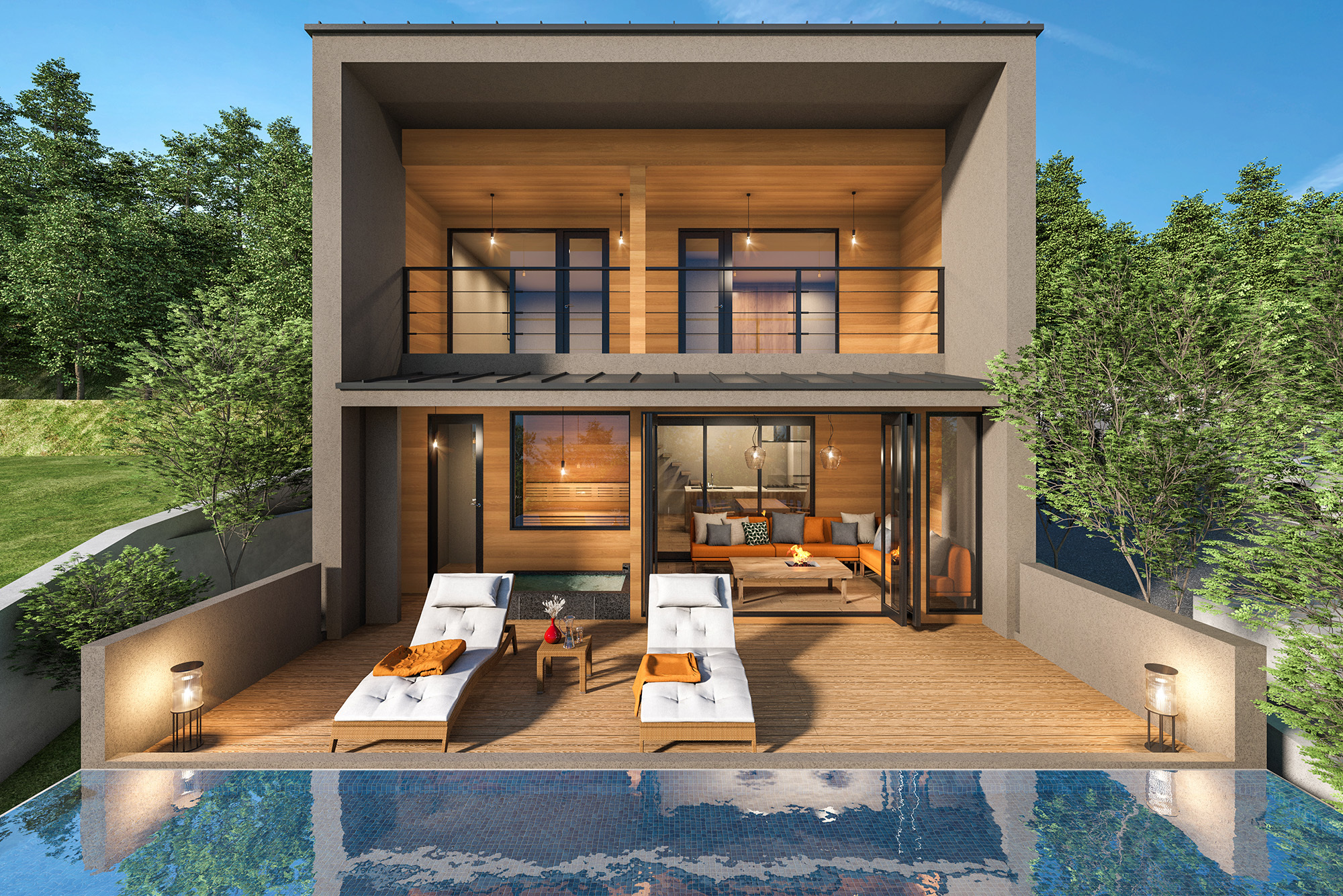 グローバルステイズ株式会社は全5棟の「天空の温泉ヴィラ紬 河口湖(所在地:山梨県南都留郡富士河口湖町大石856)」を2024年8月1日(木)グランドオープンいたします。