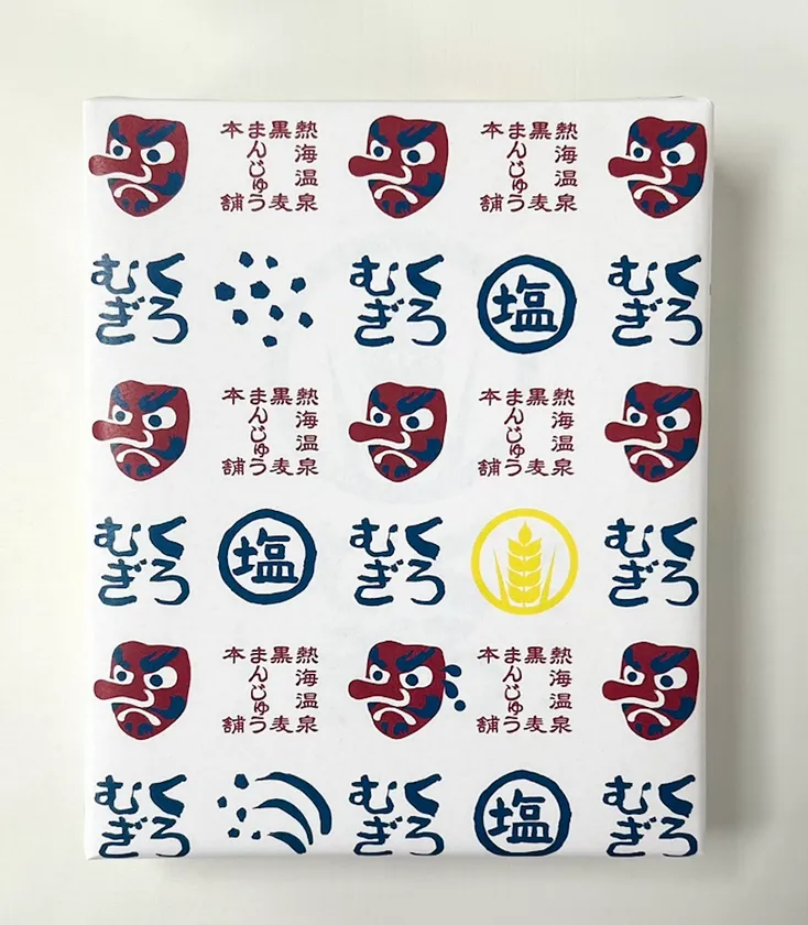 夏らしいカラーの白地に黒麦まんじゅう本舗のトレードマークである真っ赤な天狗と、爽やかな黄色の麦マークが目立つ包装デザインです。また手書き感のある「塩」の文字とイラストからは、黒麦まんじゅう本舗らしい暖かさをお届けします。季節感のあるパッケージは今の時期の熱海土産におすすめです。