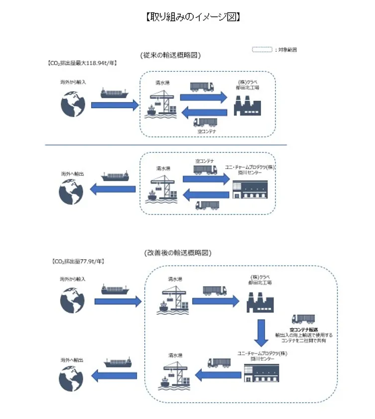 ユニ・チャーム株式会社(代表取締役 社長執行役員:高原 豪久)の生産子会社であるユニ・チャームプロダクツ株式会社は、株式会社クラベ、鴻池運輸株式会社、ロジスティード株式会社、ロジスティードエクスプレス株式会社との共同物流の取り組みによって、一般社団法人日本物流団体連合会が主催する第25回 物流環境大賞において「特別賞」を受賞したことをお知らせします。