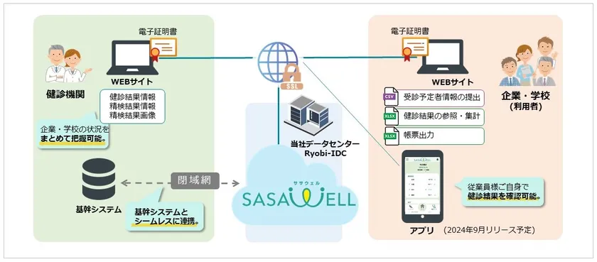 株式会社両備システムズ(本社:岡山県岡山市、代表取締役社長:松田 敏之、以下 当社)は、企業や学校(以下 利用者)の健康診断を行う健診機関が、受診予定者の一括受付、受診結果の提供を、クラウド上で安全に行うことで、利用者の負担を減らすとともに、集計・見える化した情報を提供し、健康経営や健康増進を支援することができるプラットフォーム「SASAWELL(ササウェル)」(以下 当システム)を2024年7月より提供開始いたします。なお、7月10日から東京ビッグサイトで開催される国際モダンホスピタルショウ2024へ当社として初めて展示いたします。
