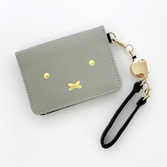 ミディアムグレーのシックな色合いが大人っぽい、お顔シリーズのパスケースです。目や口のパーツはゴールドで、りッチ感も♪