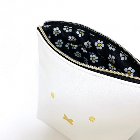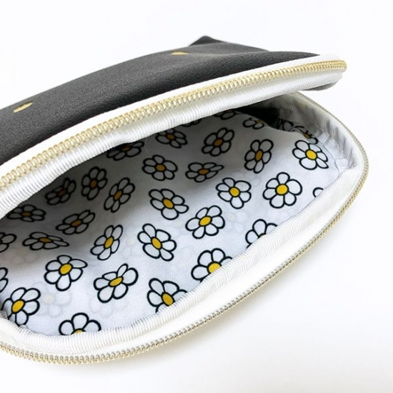 ホワイトのポーチは、裏面や内側がブラックカラーになっていますよ。