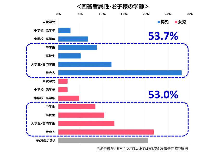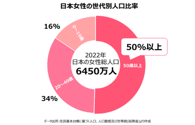 50代前後の女性の7割近くが就労者で、50%前後が小学校高学年~社会人までのトレンドに敏感な世代の子供を持つ世代が多い。