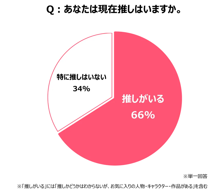 ・ 「推し」に関しては、今回も「推し」がいると答えた人は66%と前回よりも更に増加。