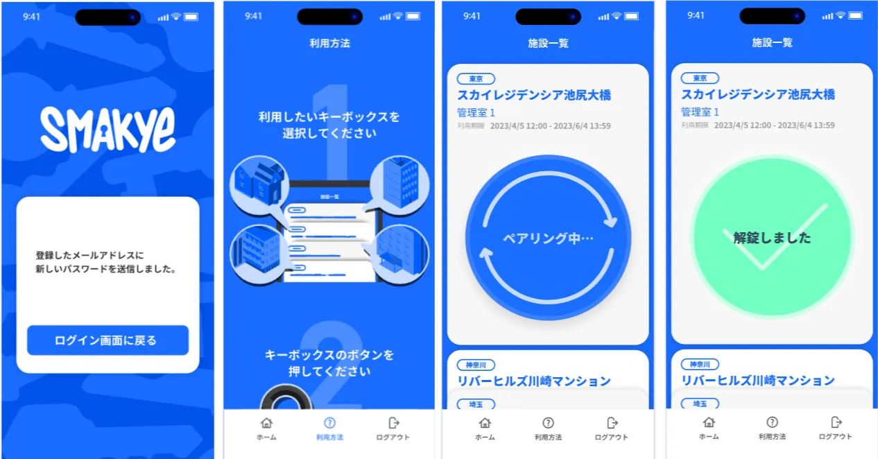 「Smakye」は、専用のスマホアプリで鍵の取り出しが可能なキーボックスです。Bluetooth通信機能を搭載しており、アプリを通じて「必要な相手に必要な時間だけ」解錠を許可することが出来ます。物件や事務所などの扉に取り付けることで、鍵の受け渡しや合い鍵の手配といった手間を省略し、スムーズなキーシェアを実現します。これにより、不動産管理会社をはじめ、宿泊施設や店舗、物流など様々なケースにおける業務効率化や利用客の利便性向上が期待されています。